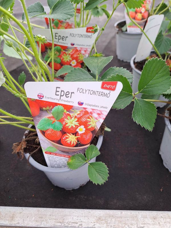Csüngő eper, amely kiültetve, de akár balkonládába is egyaránt jól érzi magát. Folyamatosan terem a fagyok beálltáig.